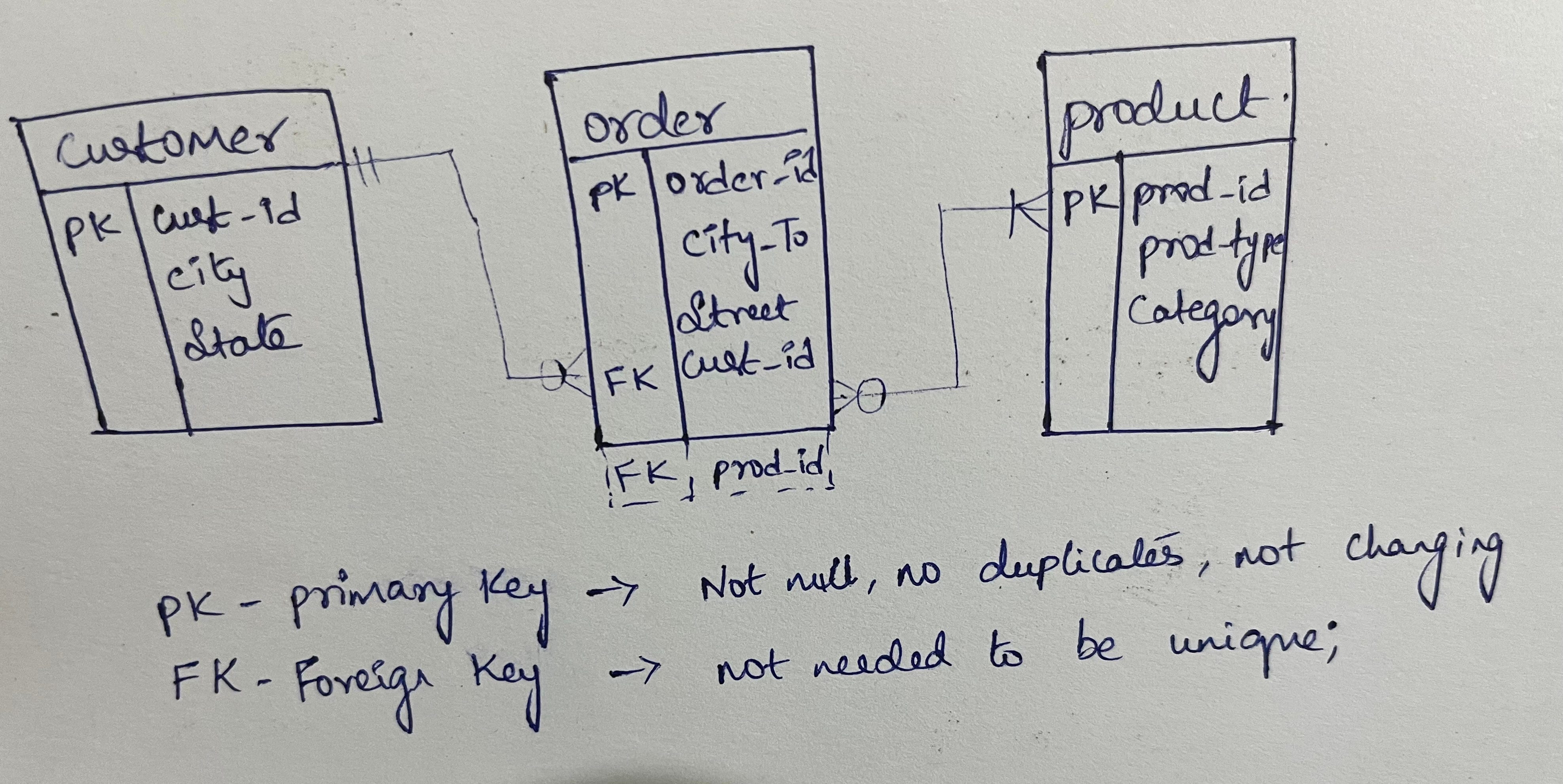 Add Primary and Foreign Keys: Determine the primary keys for each entity, which are unique identifiers that are used to link related data across different tables. Add foreign keys to the tables that represent the relationships between the entities.